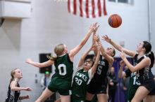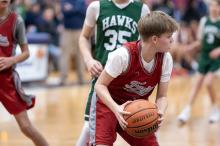 Middle school basketball took center stage at the regional high school Tuesday evening for the boys and girls basketball championships. The West Tisbury School Hawks won both games, claiming the boys title with a 73-52 win over the Edgartown Eagles and the girls title with a 36-33 win over the Oak Bluffs Blazers.